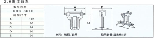 DHC系列電纜車線由滑軌(C型槽管)、支架、懸吊夾、連接夾套、攜纜首車、攜纜小車、撥叉、定位末車、封頭等組成。該系列產(chǎn)品平整美觀、安全可靠,安裝簡(jiǎn)捷,適用于有防爆技術(shù)要求和一切必需用軟電纜移動(dòng)供電的系統(tǒng),如煙草、水廠、港口、礦山等部門。